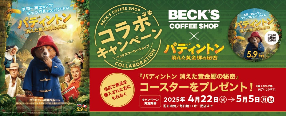 映画『パディントン 消えた黄金郷の秘密』コラボ企画ベックスコーヒーショップ 2025年4月22日(火)から映画オリジナルコースターを限定でプレゼントムビチケが当たるSNSキャンペーンも開催!