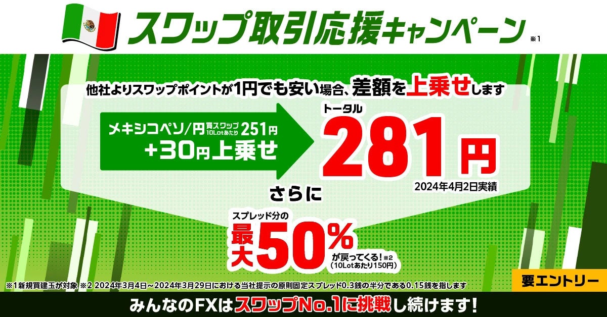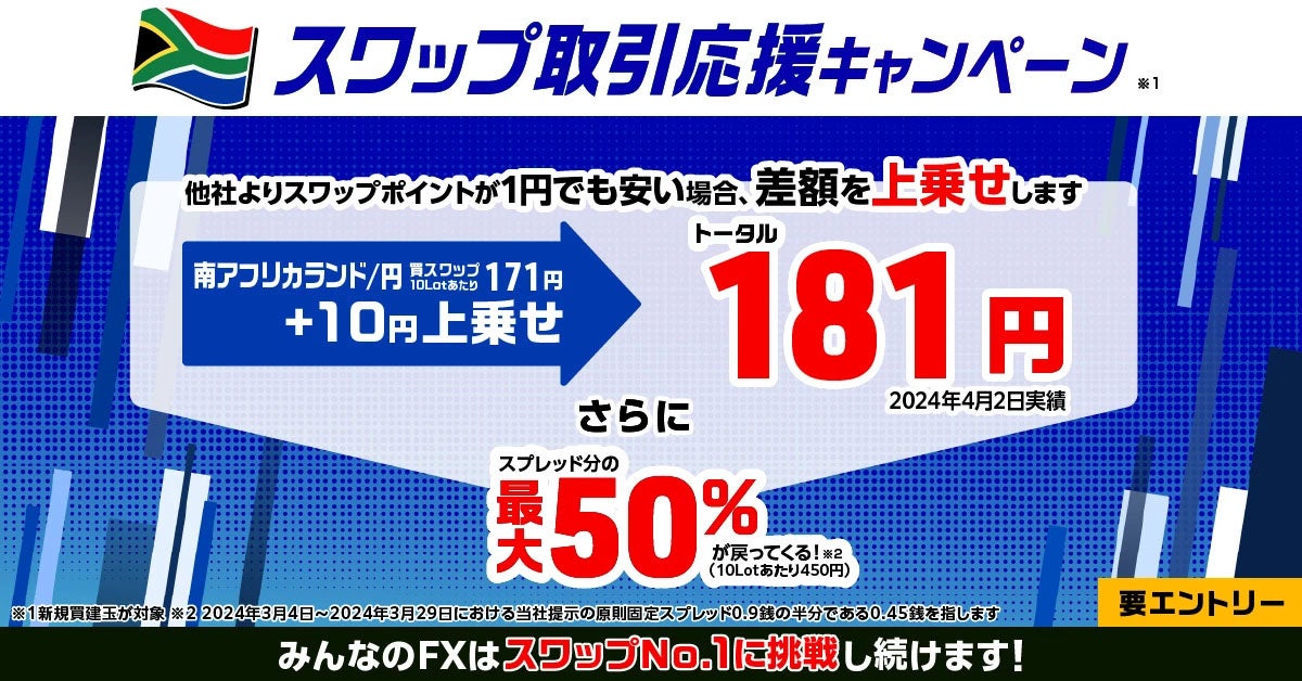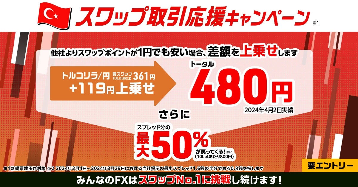 【みんなのFXはスワップNo.1に挑戦し続けています!】高金利3通貨ペアでスワップ取引応援キャンペーンを5月7日(火)から開始!