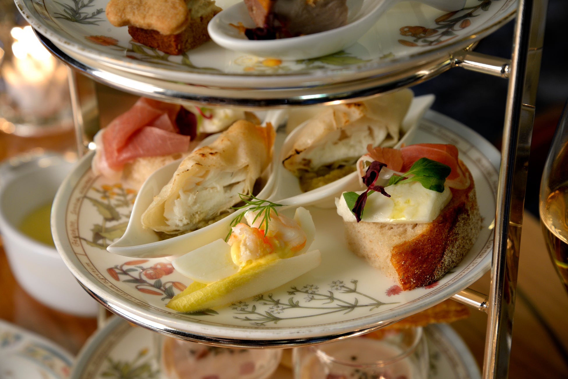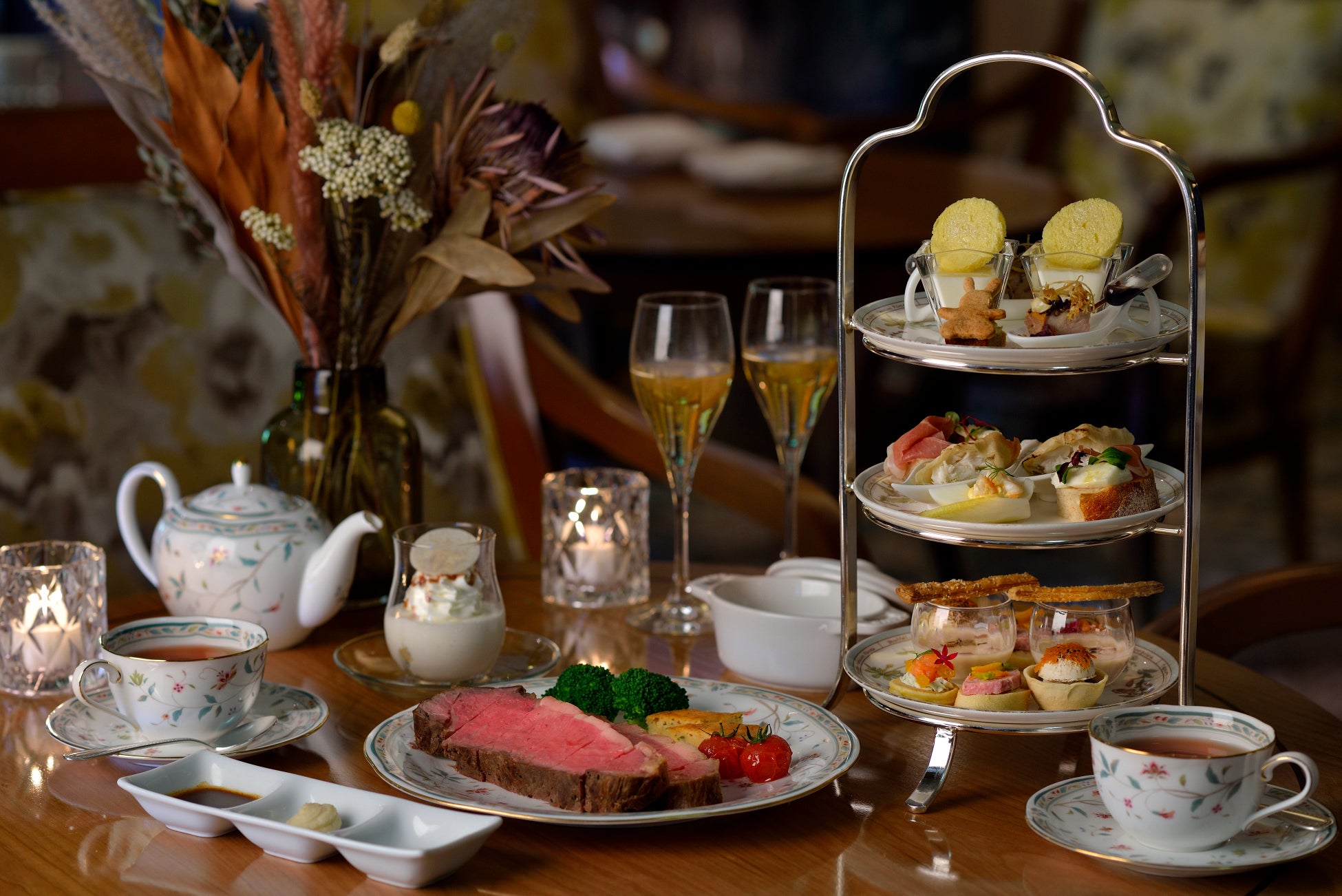 アフタヌーンティーより少し遅い時間に、グラスシャンパンとともに秋の味覚を存分にお楽しみいただく「お月見イブニングハイティー」。