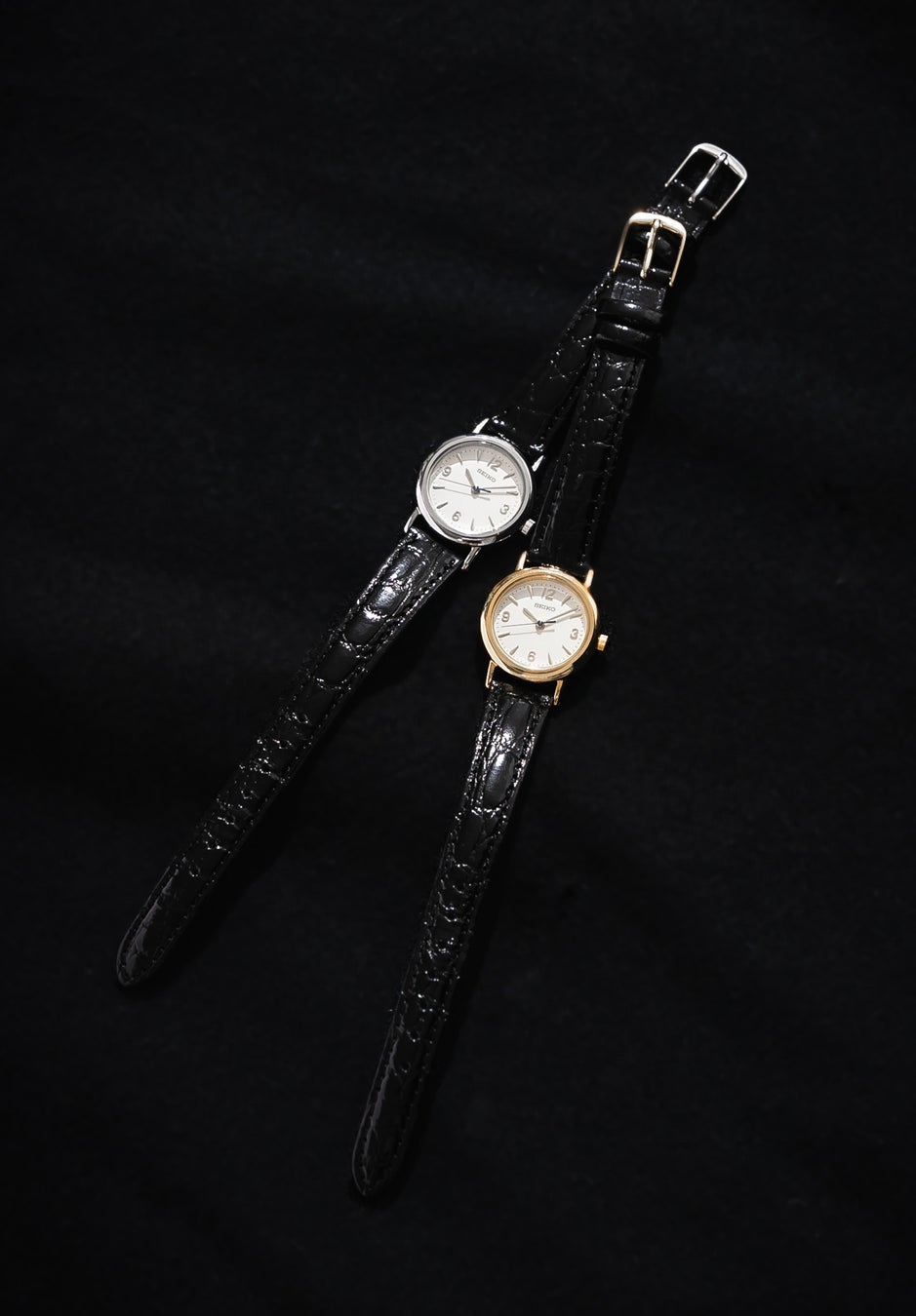 バンドには艶のあるクロコダイル型押し入りの牛革を使用。