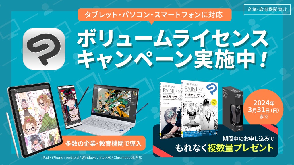 企業・教育機関向け「CLIP STUDIO PAINT EX / PRO ボリュームライセンス」の期間限定プレゼントキャンペーンを実施