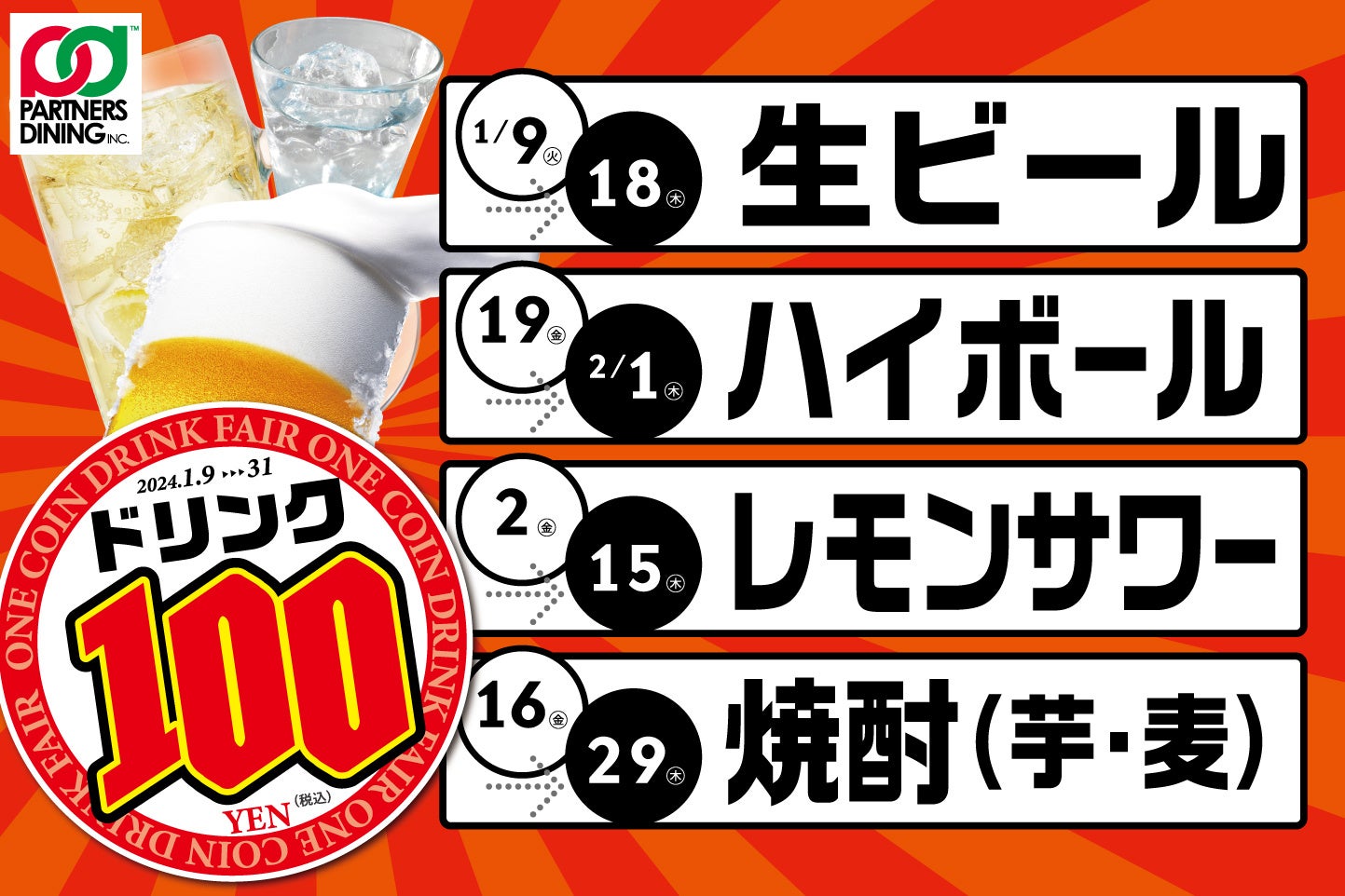 「北の家族」などを運営するパートナーズダイニングが「100円ドリンクウィーク」を開催中!