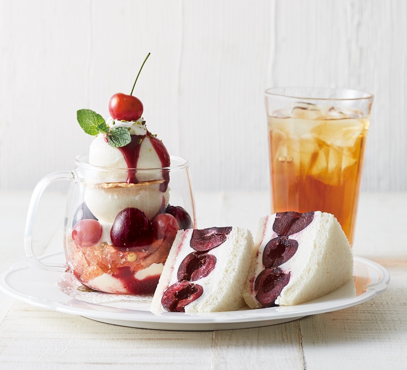 ■商品名:さくらんぼづくしのスイーツプレート(さくらんぼのフルーツサンド&パフェ)
