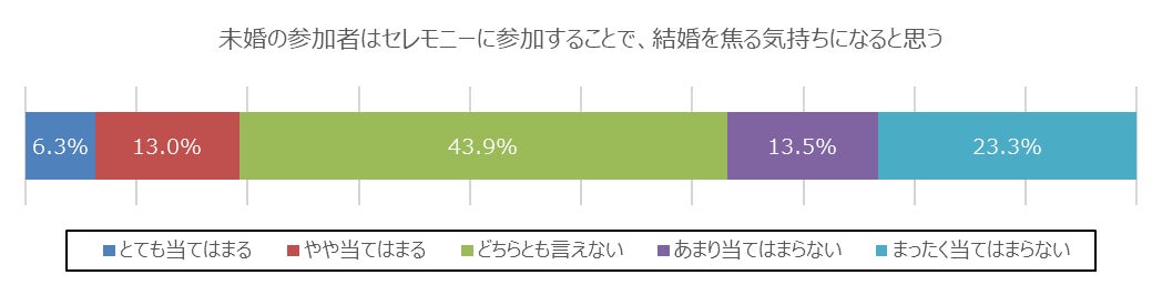しかし、「未婚の参加者は、結婚式などのセレモニーに出席すると結婚を焦る気持ちになると思う」と考えている人の割合は19.3%にとどまり、否定的な意見の方が多い結果となりました。