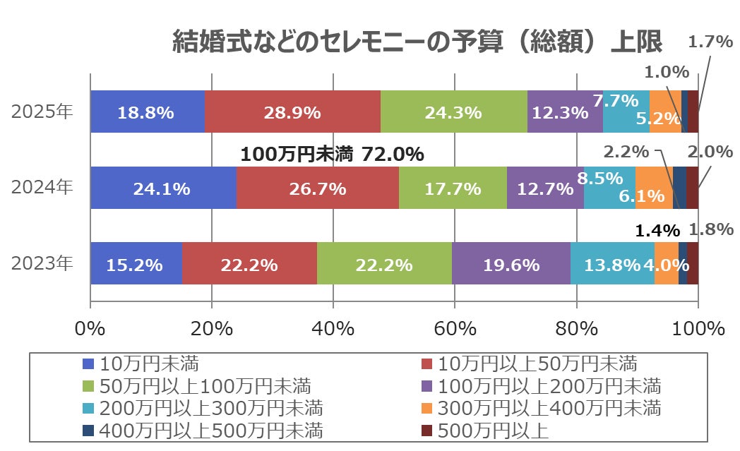 ・セレモニー開催するなら100万円未満、前年から微増の72.0%に
