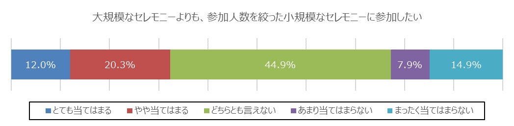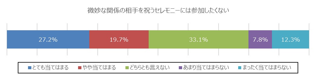 「微妙な関係の相手を祝うセレモニーには参加したくない」は支持率が46.9%、「大規模なセレモニーよりも、参加人数を絞った小規模なセレモニーに参加したい」は支持率が32.3%でした。