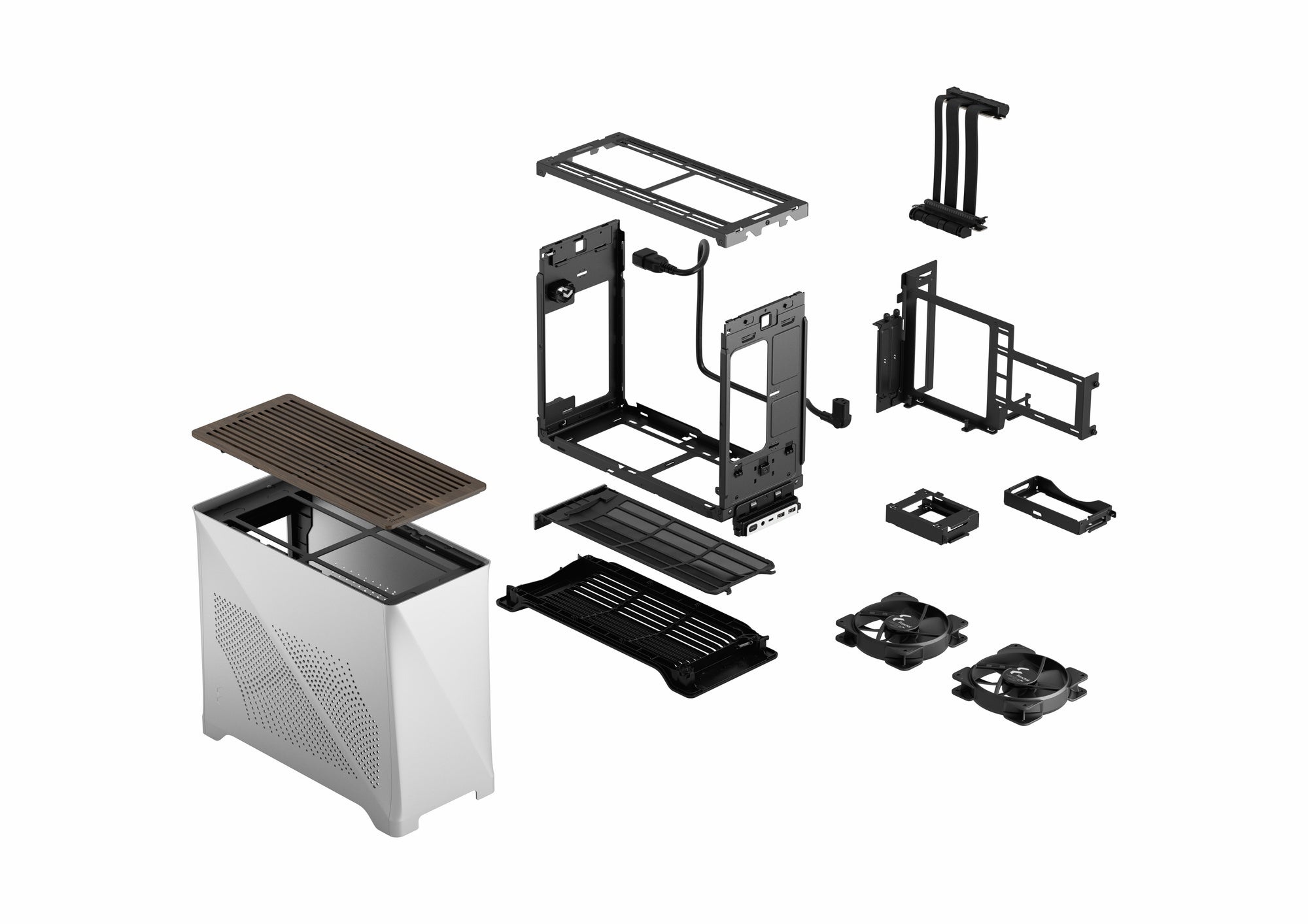 「Era 2」シリーズは、優れたデザインで好評だった「Era ITX」の後継モデルとなり、構造を見直し機能性に優れたミニPCケースです。エレガントな雰囲気を醸し出す、アルマイト加工されたアルミニウムパネルと、ウォールナット素材のトップパネルを採用するほか、コンパクトなデザインながら最大326mmの3スロット厚グラフィックボードと、最大280mmの水冷用ラジエーターに対応し、高性能なPCを組み立てられます。ツールレスでケース内部へアクセスすることができ、組み立てやすい設計になっていることも特徴です。