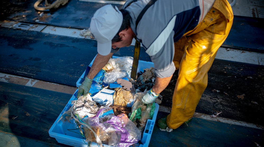 「UPCYCLING THE OCEANS」とは、海洋ゴミの回収とリサイクル素材活用推進のためにスペインECOALF社とECOALF財団が2015年からスペインを拠点にはじめたプロジェクトです。地中海の多くの漁師・漁業組合の方々の協力により、漁業で引き上げられた海洋ゴミからペットボトルを回収・分別・再生し、繊維に変え新たな製品をつくりだしています。2024年には世界74か所以上の港で4000人以上の漁師の方々の協力を得て、2015年から2024年までで累計約1700トンもの海洋ゴミを回収してきました。