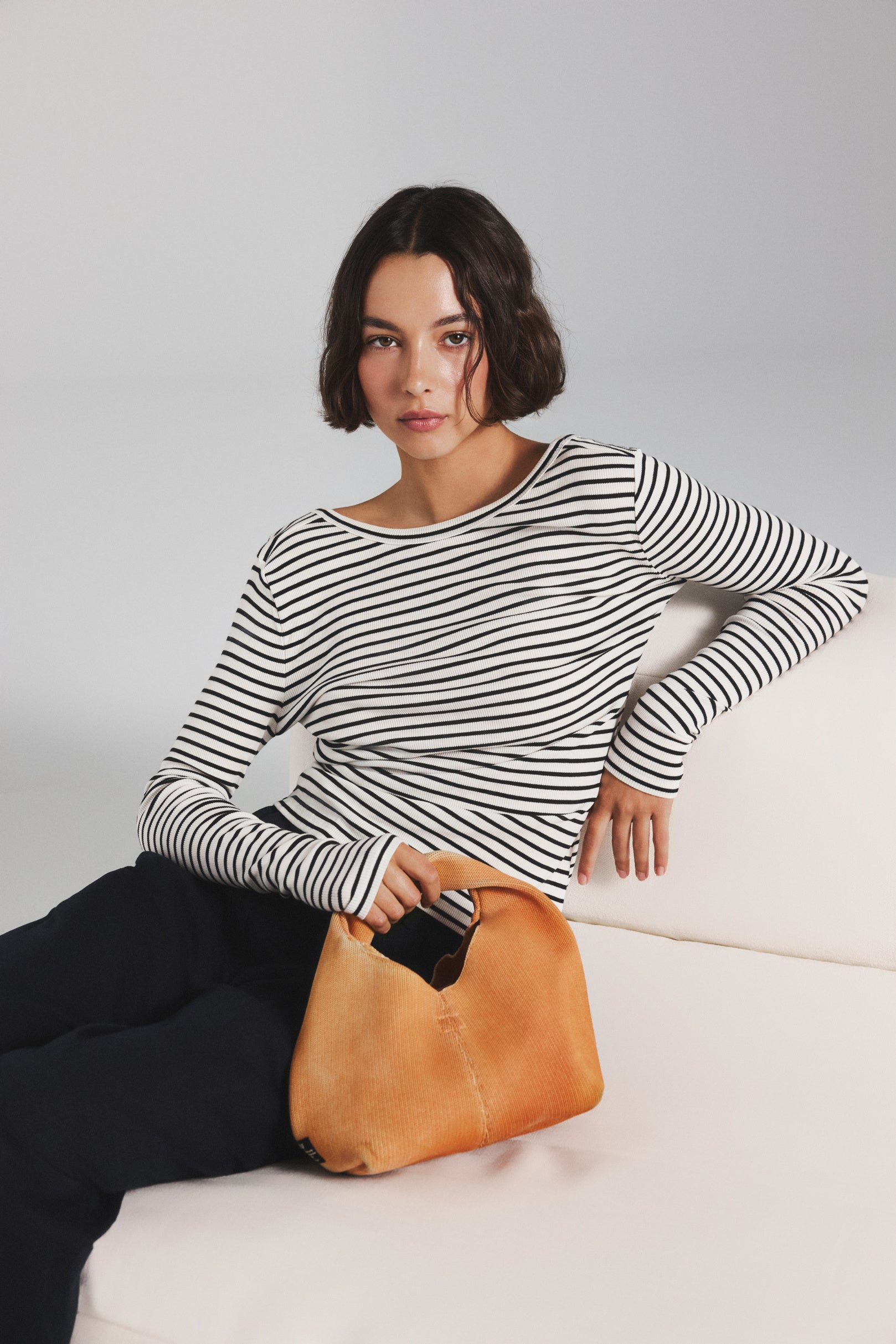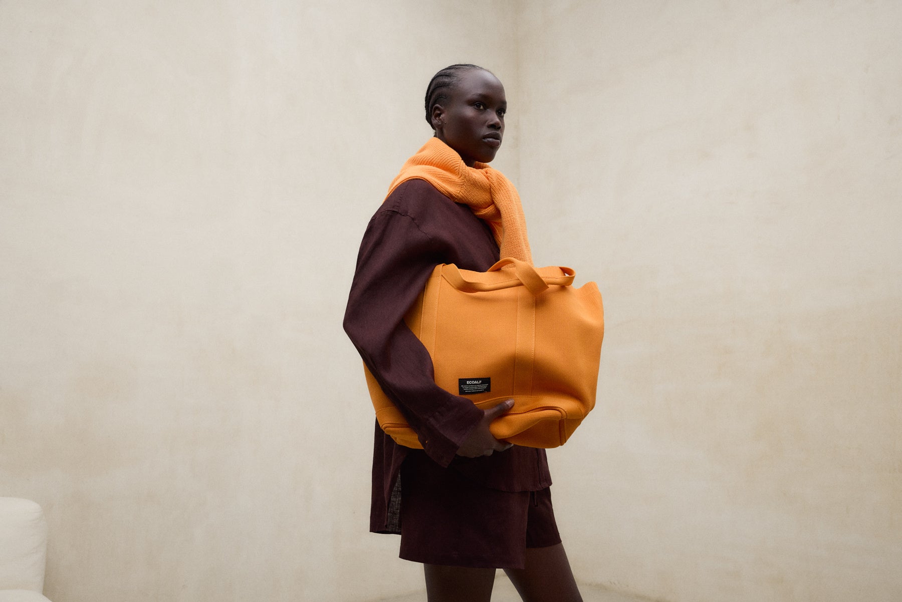 オーシャンヤーンからつくられたバッグ「OCEAN TIKA」シリーズは軽量で耐久性に優れています。今シーズンはどんなスタイリングにも取り入れやすいブラックと、アクセントにぴったりのシーズナルカラー、タンジェリンオレンジの2色が登場。