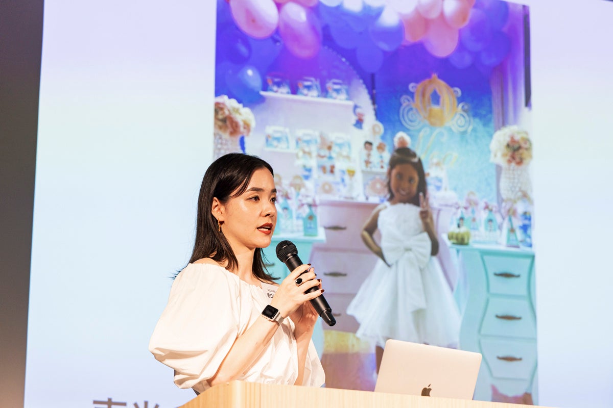 書類選考を通過したファイナリストは、東京ミッドタウン八重洲の「POTLUCK YAESU」で開催される本選に出場する。写真はBWA Pitch Contest 2023で飾り付けアイテムブランド、SOL LUNAの取り組みを発表し、Dream Awardを受賞した堀口安奈。
