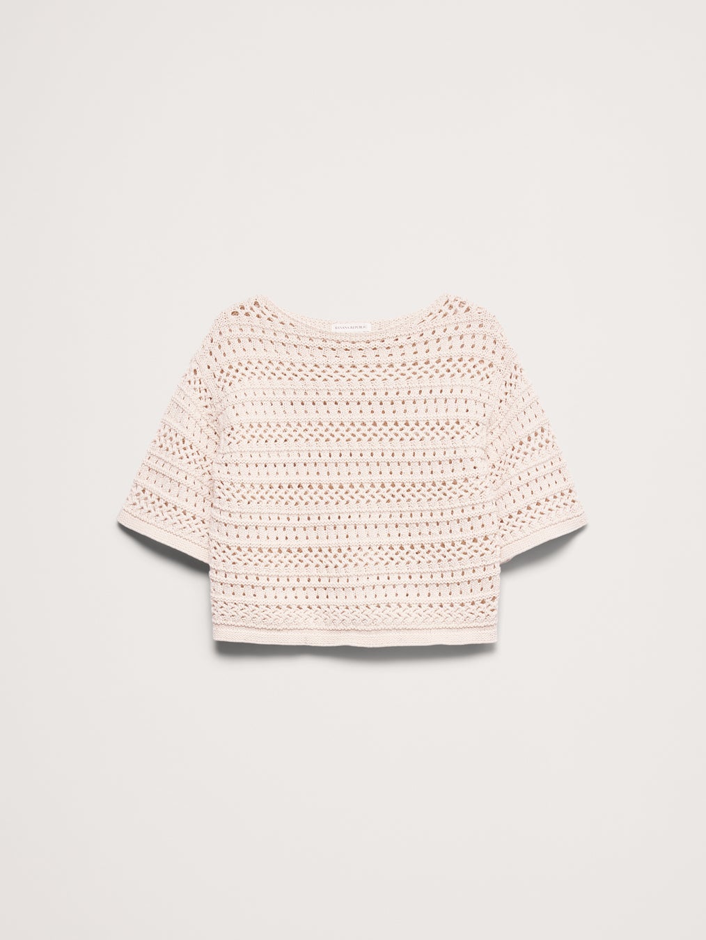 コットンクロシェットセーター(17,000円):柔らかなコットン100%のクロシェ編みトップス。