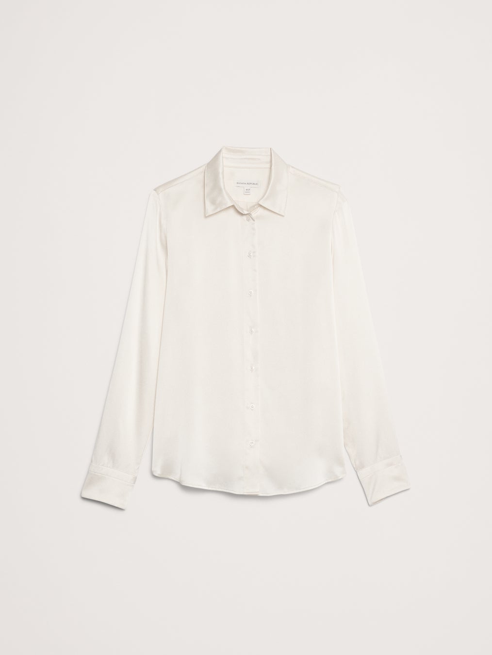 シルクシャツ(22,000円):シーズン問わず活躍する、上品な光沢となめらかな肌ざわりが魅力のシルクシャルムーズを採用したシャツ。