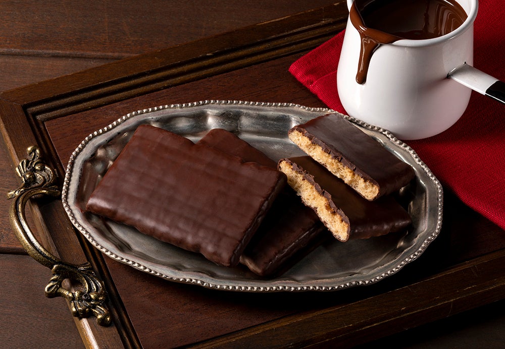 外側のチョコレートには「銀のぶどう」が誇る炭火焙煎クーベルチュールを溶かしこんだ“濃密ショコラ”を使用。すっきりとした甘さに芳醇な香りとコクが特徴の、本格感のある味わいです。香ばしいシリアル生地をサクッとかじれば、全面にたっぷりとかけた濃密ショコラがとろ~り。まるでチョコフォンデュのようなおいしさをぜひ味わってみて。