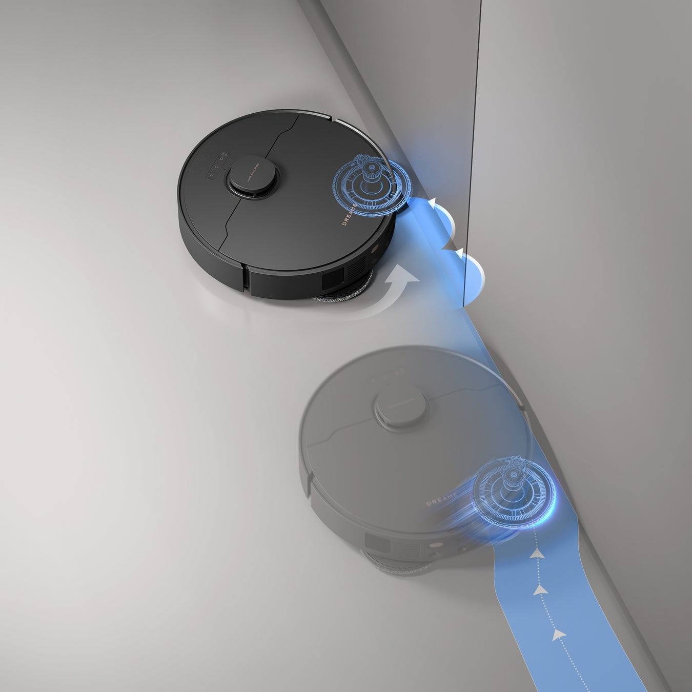 モップエクステンド技術(MopExtend Technology™)は、主に壁際などロボット掃除機では清掃が難しい箇所にアプローチが可能となるDreameが独自に研究開発した技術です。今回、新たにモップエクステンド・ロボスイングテクノロジー(MopExtend RoboSwing Technology)により更なる進化を遂げました。X30 Ultraは、モップの拡張と掃除機本体をスイングさせる動作により、ロボット掃除機では高さ1cmの隙間、4cm奥深くまでの清掃が難しい場所の自動清掃が可能となりました。