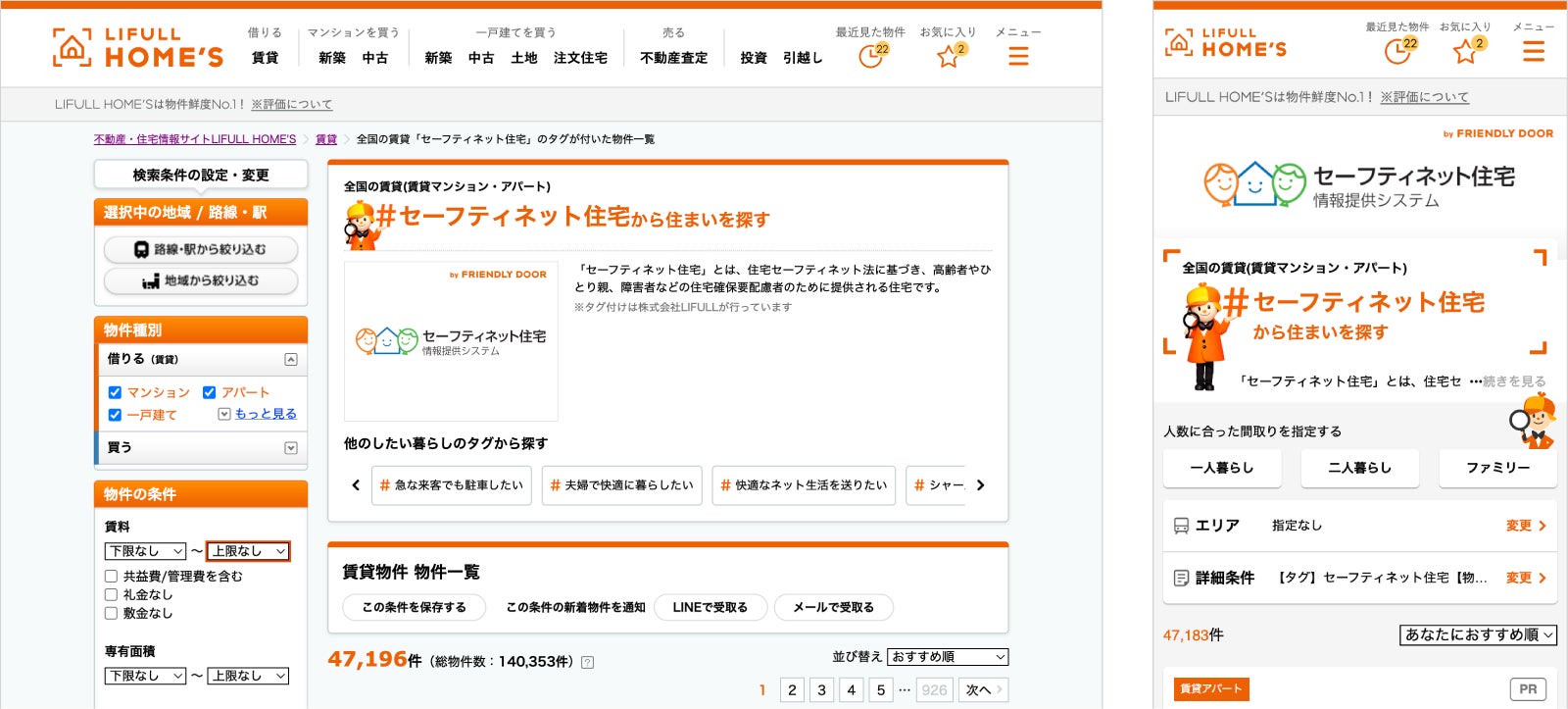 LIFULL HOME'S上でセーフティネット住宅の検索や空き状況の確認が可能に