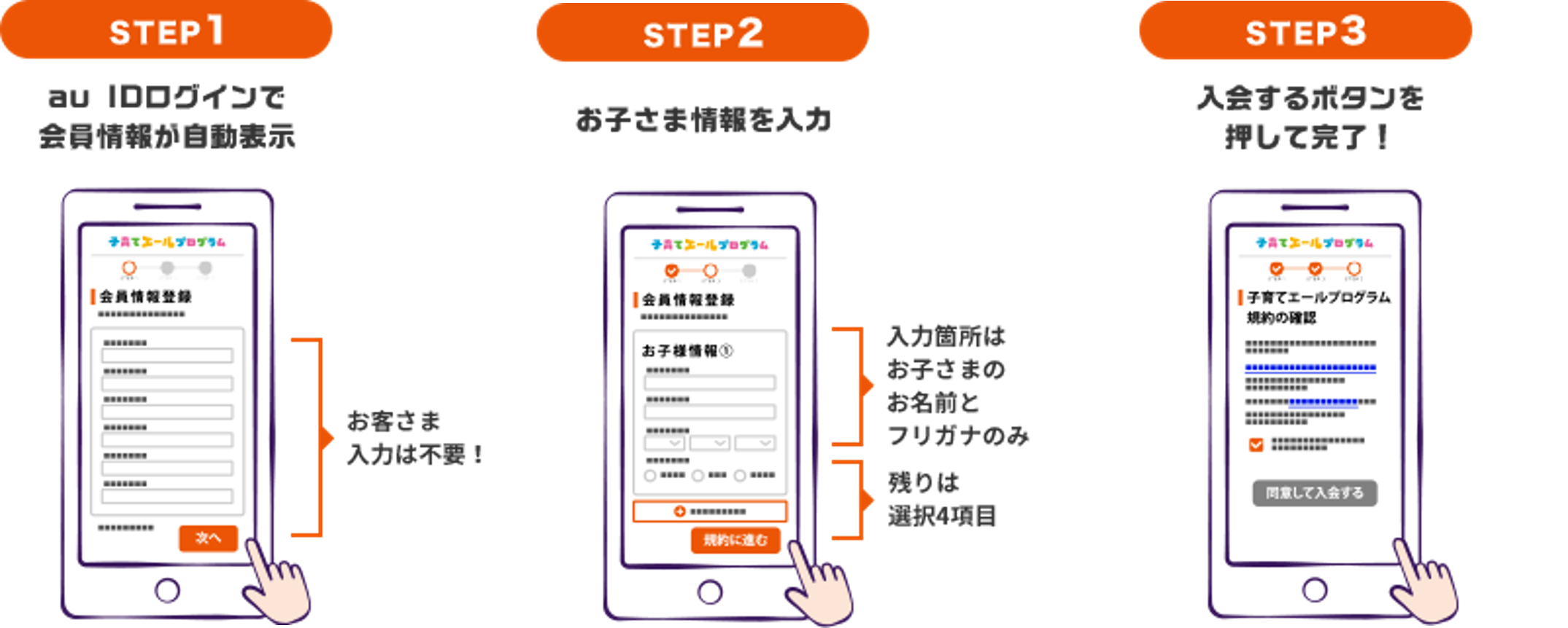 - 適用条件:auスマートパスプレミアム会員が、特典提供期間中に「子育てエールプログラム」に新規ご加入