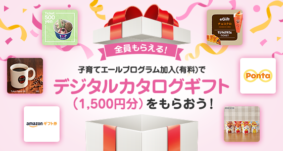 「子育てエールプログラム」は、小学生以下のお子さまがいるご家庭を応援する、au・またはUQ mobileの携帯電話をご契約されている方に向けた会員プログラムです。月額110円(税込・初月無料)で、加入の翌月から毎月100Pontaポイントをプレゼントをするほか、年1回の1,500円相当の選べるカタログギフトなど「必ずもらえる特典」と、毎月変わる「抽選特典」をご用意しています。さらに、公式サイトでは、ちょっと気になる子育てに関する情報も配信し、子育てをするママパパがより充実した毎日を過ごせるよう、サポートします。
