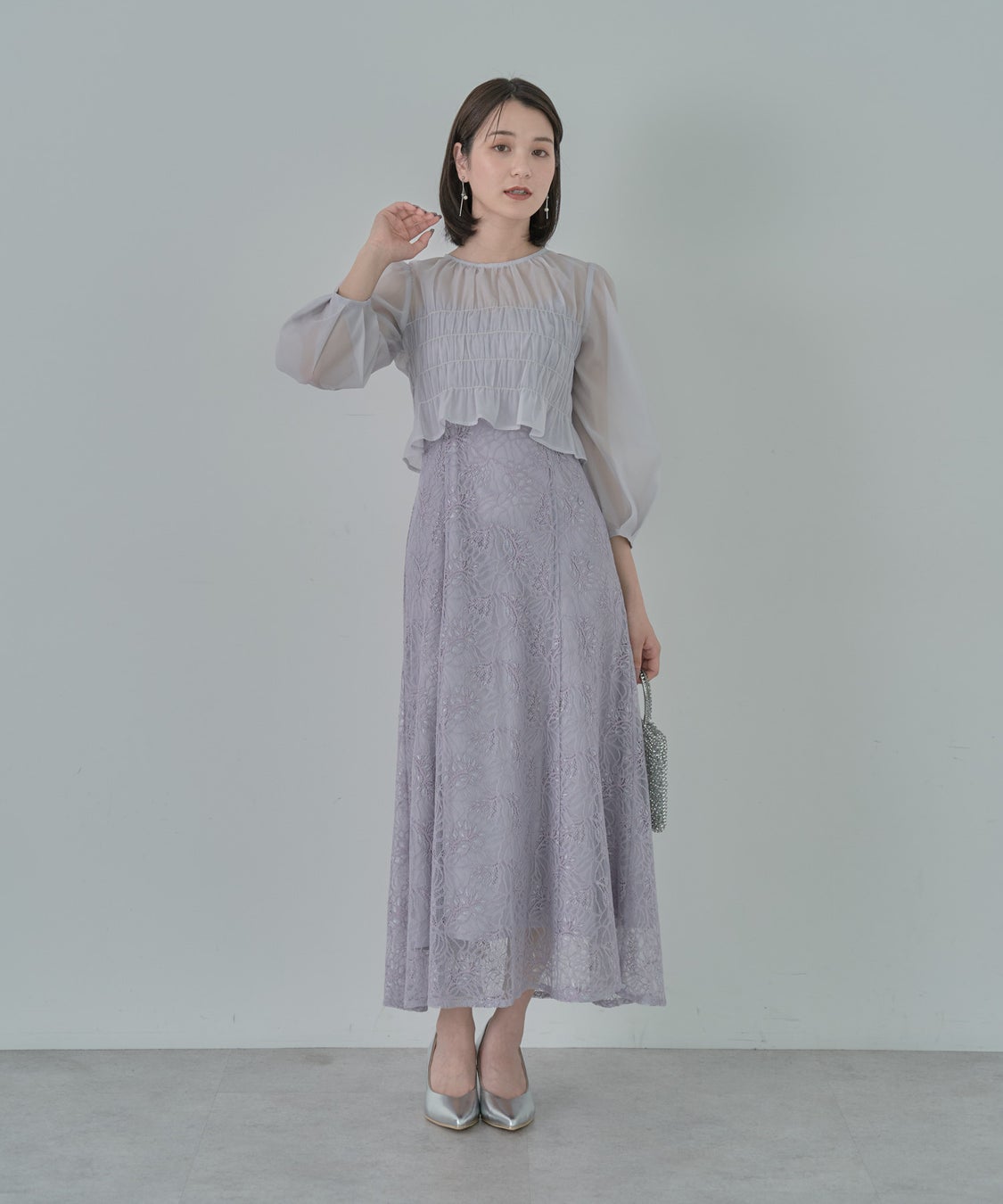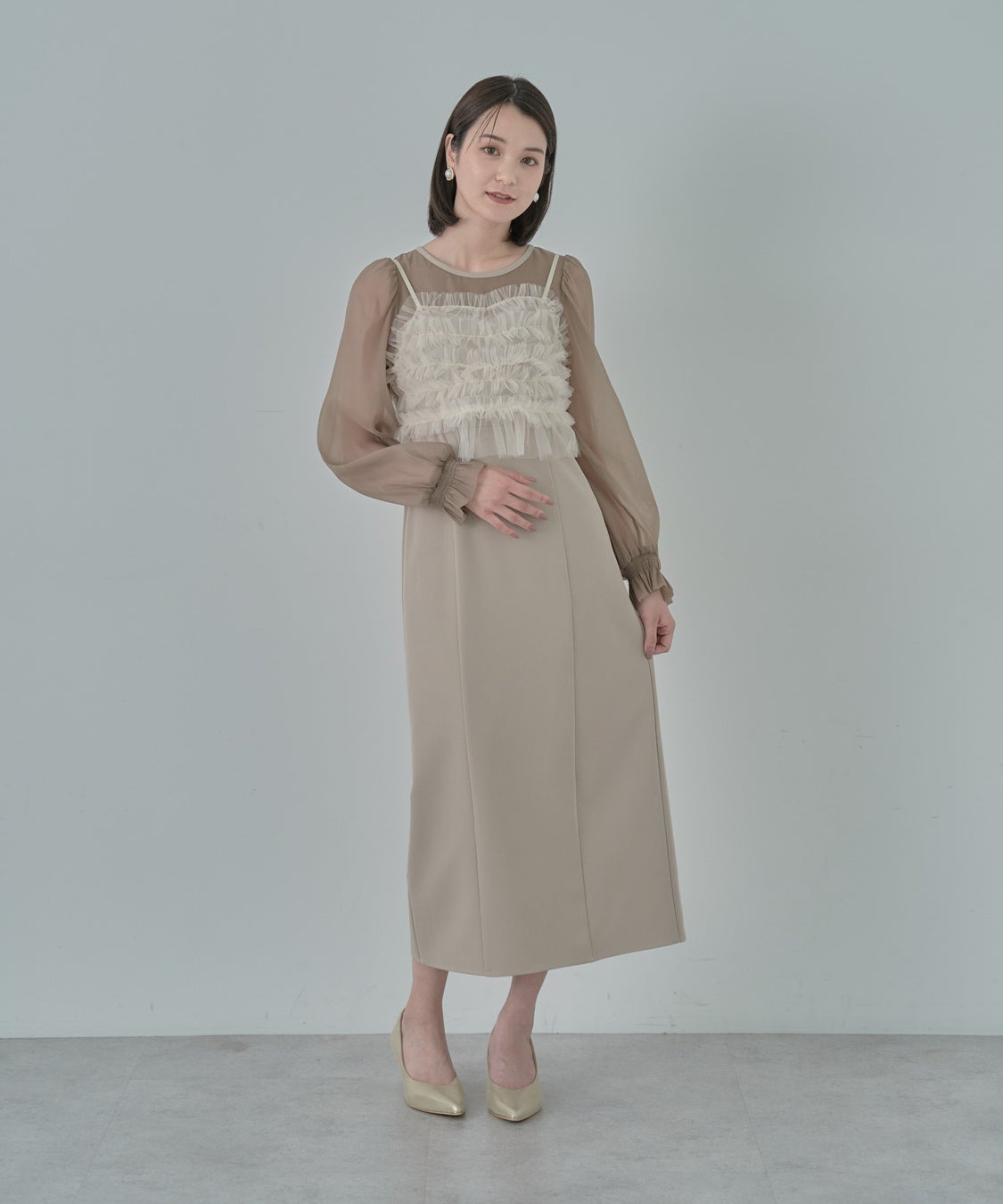 そのほかのワンピースは、すべて2点SETにてラインアップ。チュール使いやフリル、ビスチェなどトレンド要素も取り入れたearth music&ecologyらしいアイテムに仕上げました。とっておきのシーンはもちろん、ご自宅のワードローブと組み合わせることで、デイリーにも着回しの効くおすすめアイテムです。新作ワンピースも前回同様、すべて1万円以下と、手に取りやすい価格でご用意しております。