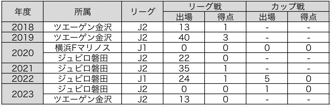 作陽高校 - びわこ成蹊スポーツ大学 - ツエーゲン金沢 - 横浜F・マリノス - ジュビロ磐田 - ツエーゲン金沢(期限付き)
