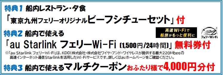 船内で使える「au Starlink フェリーWi-Fi (1,500円/24時間)」無料券付