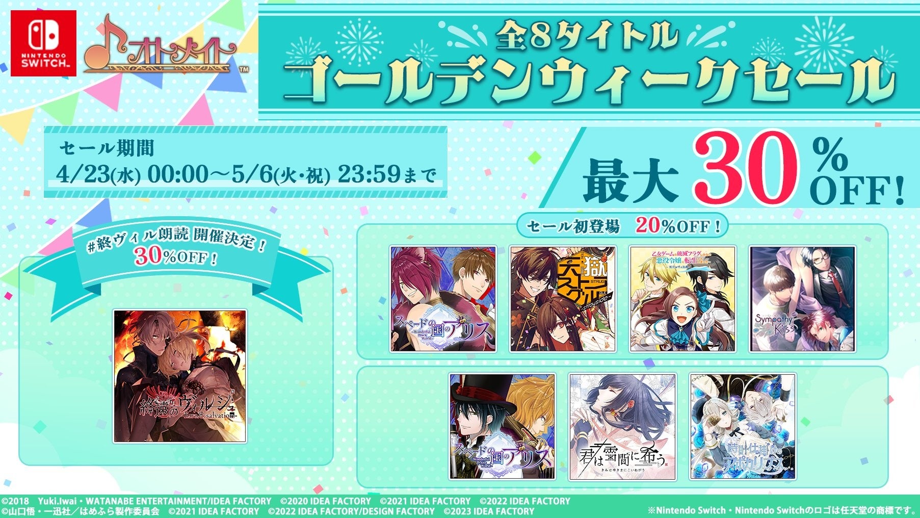 ただ今、オトメイトゲームタイトル一部がお安く購入できる、GW SALE(ゴールデンウィークセール)を開催しております!