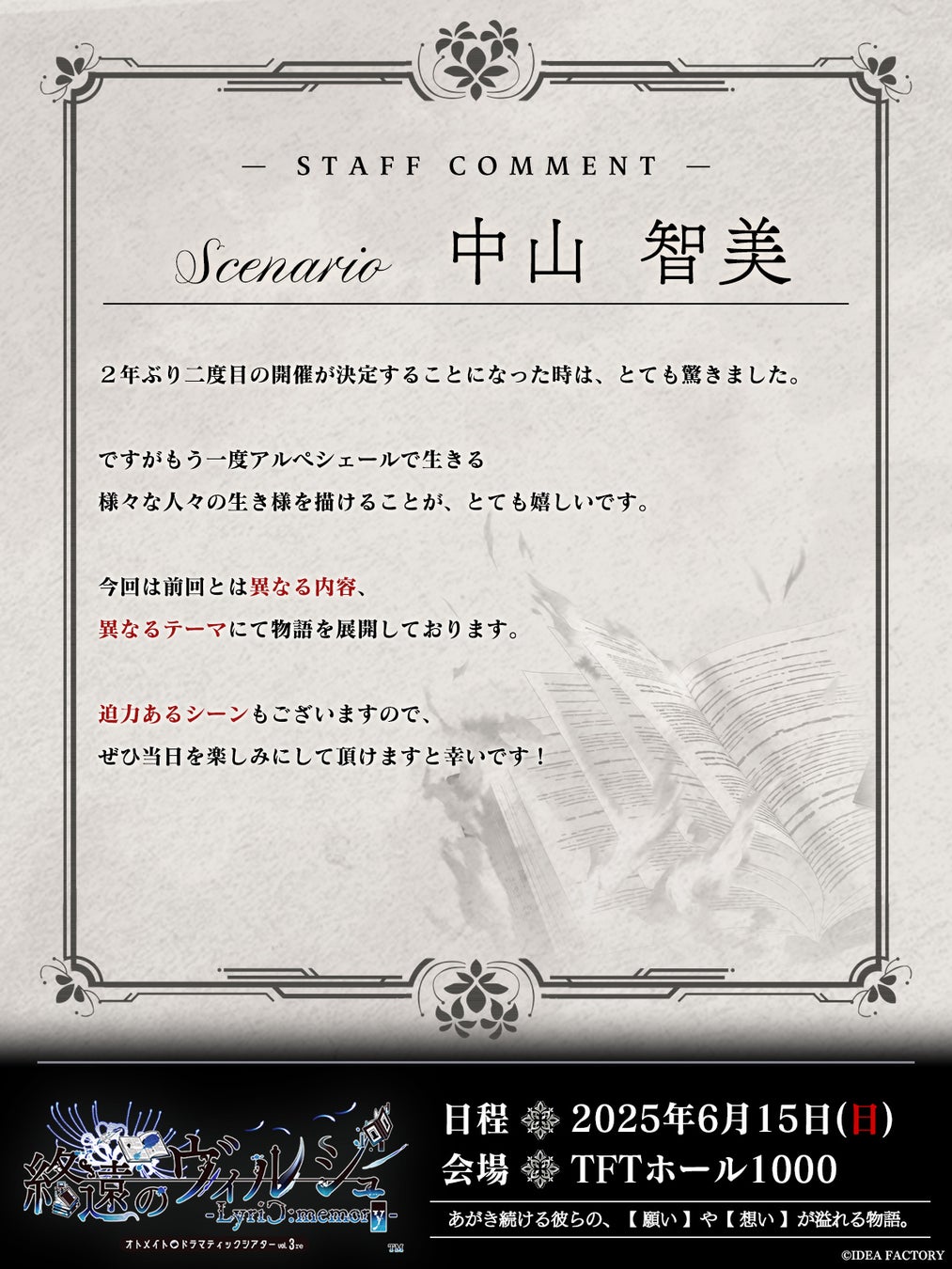 本公演開催にあたり、本作スタッフからのコメントを公開。
