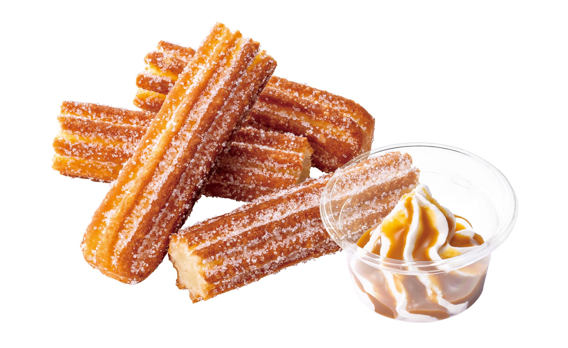 商品概要:フランス産ロレーヌ岩塩を使用した塩キャラメルソースをかけたホイップクリームに、サクッともちもち食感のチュロをディップしてお楽しみいただくスイーツです。