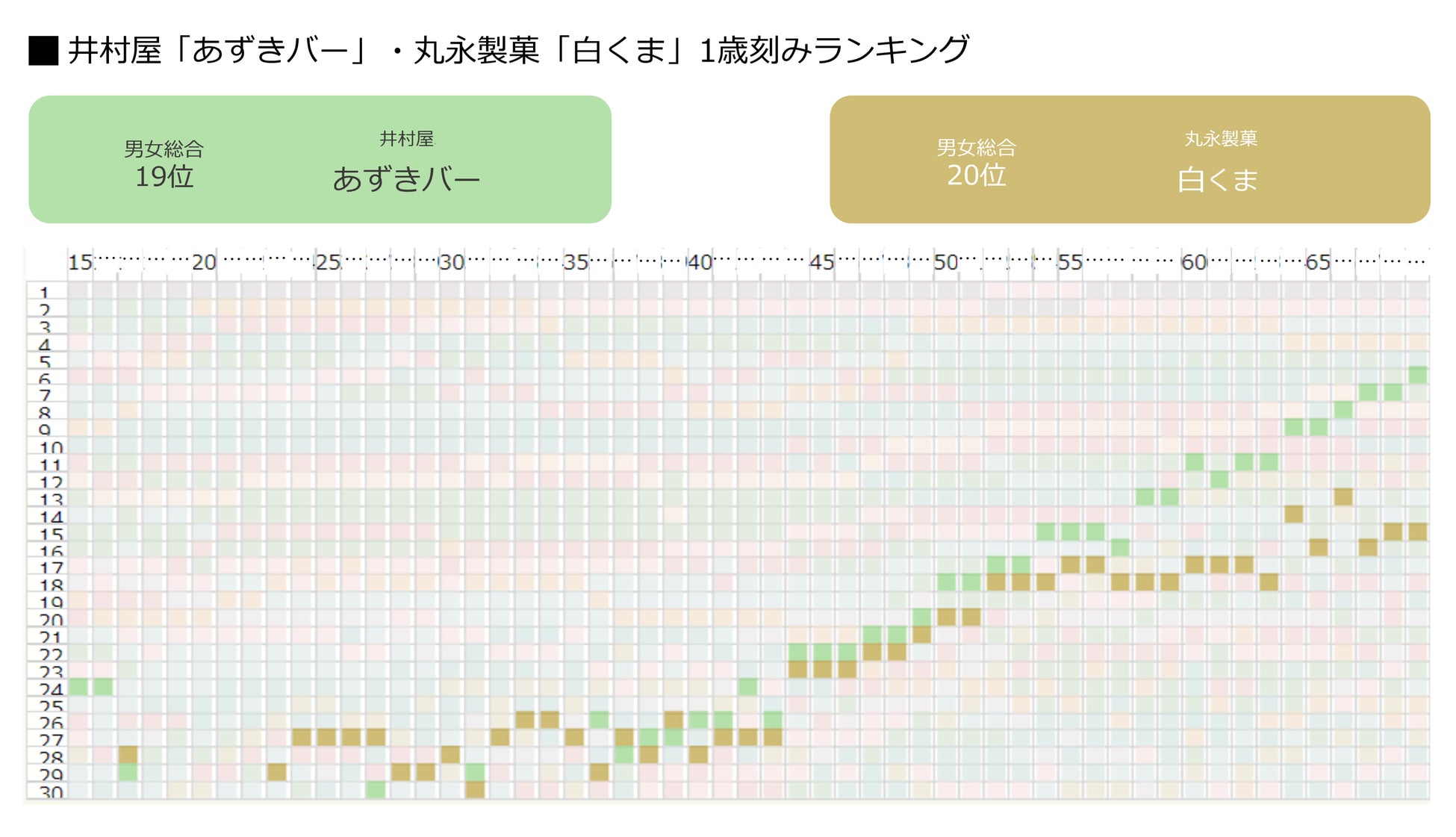 1回目は35歳で、20歳から33歳まで2位をキープしているハーゲンダッツ「ミニカップ」が、江崎グリコ「パピコ」と順位が入れ替わります。