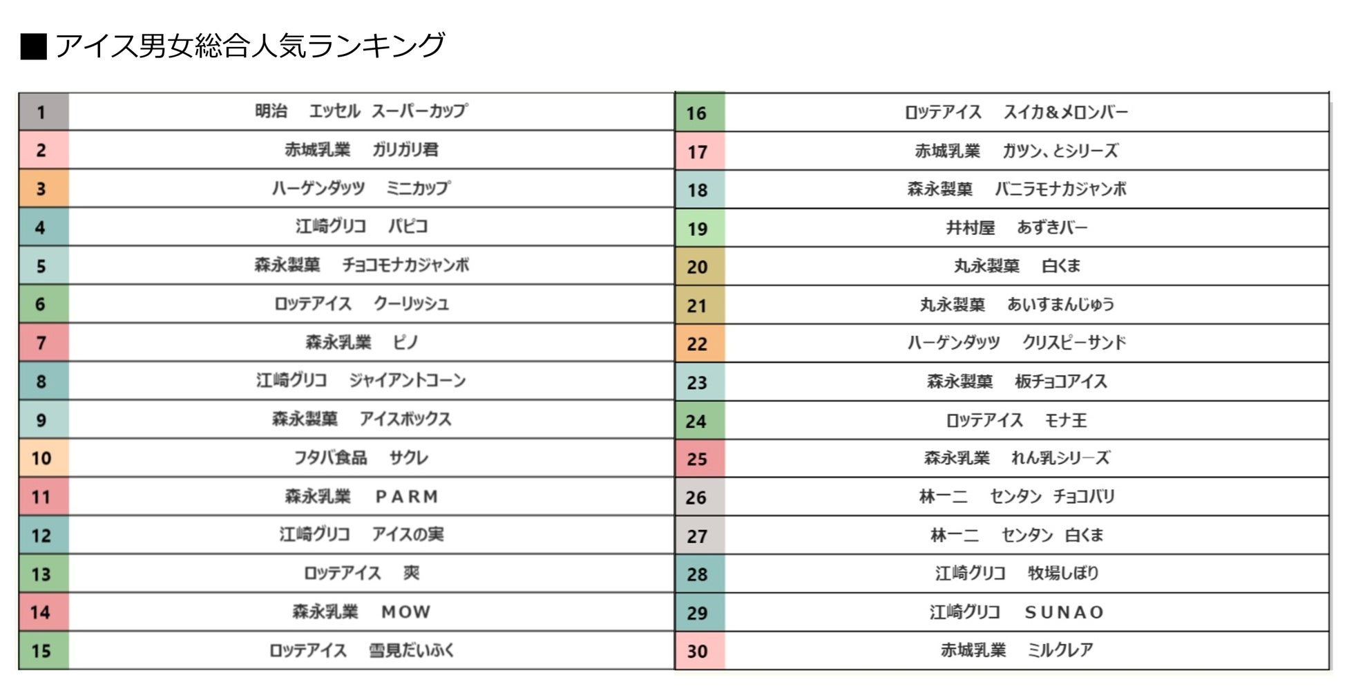 - 【男女総合・購買ランキング】アイスの総合ランキング(TOP30)