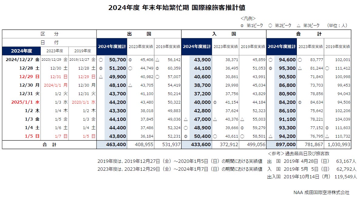 成田国際空港株式会社はこの度、年末年始期間中に成田空港をご利用になる旅客数の推計を取りまとめましたので、お知らせいたします。