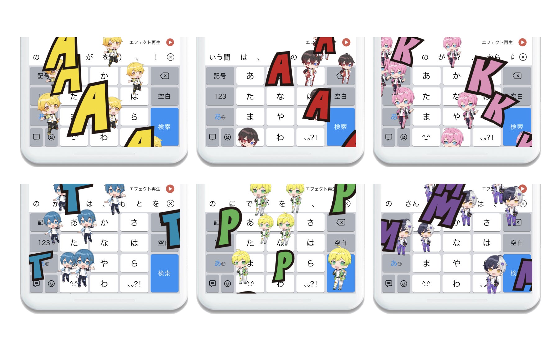ユーザーが文字を入力し、変換候補より特定のキーワードを選択することで画像や動画がキーボード上に現れる機能です。当コラボでは特定のキーワード「AMPTAKxCOLORS」「RAINBOWxPATROL」「実況」や、AMPTAKxCOLORSのメンバーの名前などを入力するとエフェクトが再生されます。今回のコラボならではのエフェクトをお楽しみください。