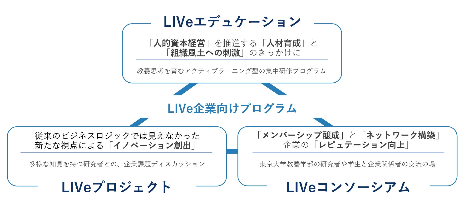 『LIVe』では、こうしたリベラルアーツの力によって参画企業とともに社会にイノベーションを生み出すことを目指し、新たに『LIVe企業向けプログラム』の提供を開始いたします。