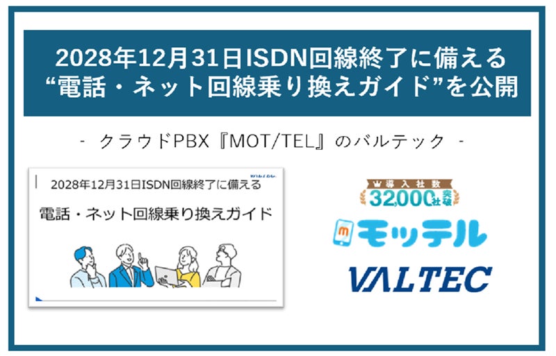 株式会社バルテック(本社:東京都新宿区)は、2028年12月31日に予定されているNTT東日本・NTT西日本のISDN回線提供終了に伴い、切り替えにまだ着手できていない企業様や、特殊な事情により移行が進められない企業様を支援するため、「電話・ネット回線乗り換えガイド」を公開しました。