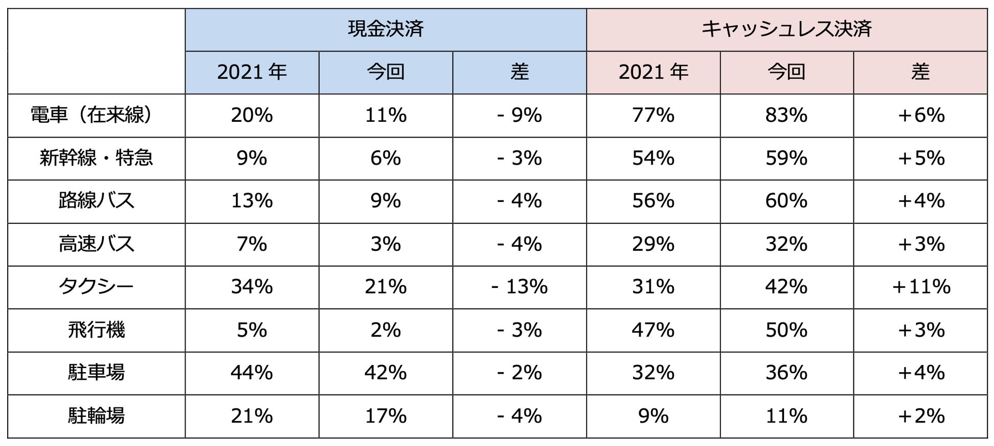 〜5年前と比較し全ての移動関連サービスのキャッシュレス決済比率が上昇〜