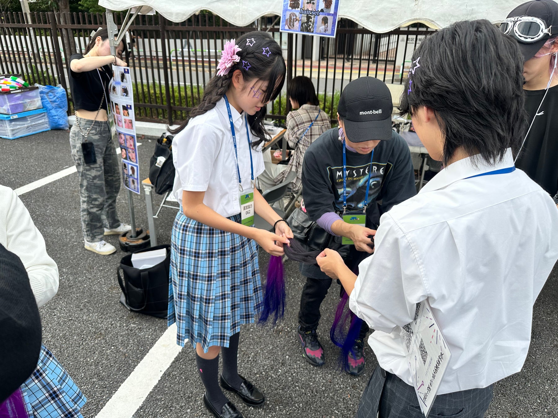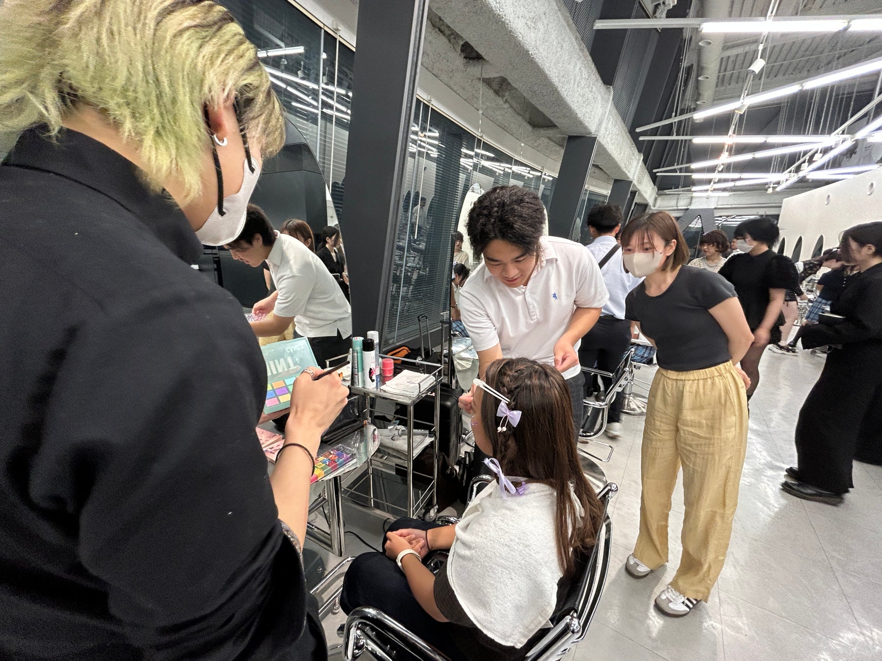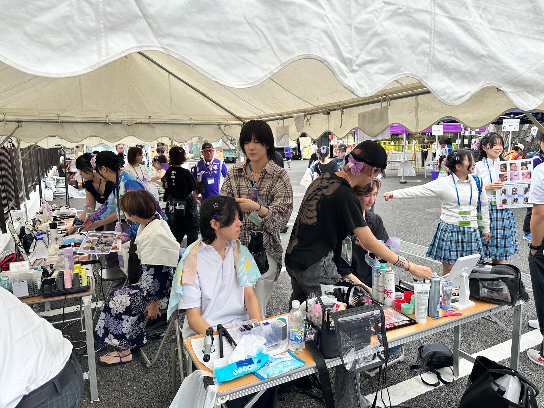 東京モード学園とクラーク記念国際高校の学生が連携して、ヘアアレンジ、フェイスペイントを実施しました。