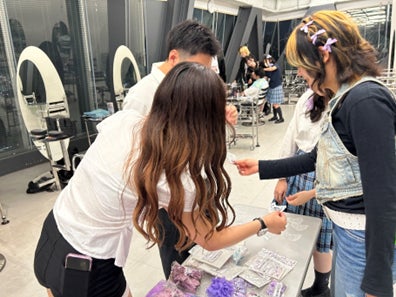 ヘアアレンジやメイクに興味がある高校生たちは、実際にプロを目指す学生たちのサポートを受けながら、クリアソンのチームカラーである紫をテーマにしたメニューを考案し、自らモデルとなって当日のメニュー表を作成しました。