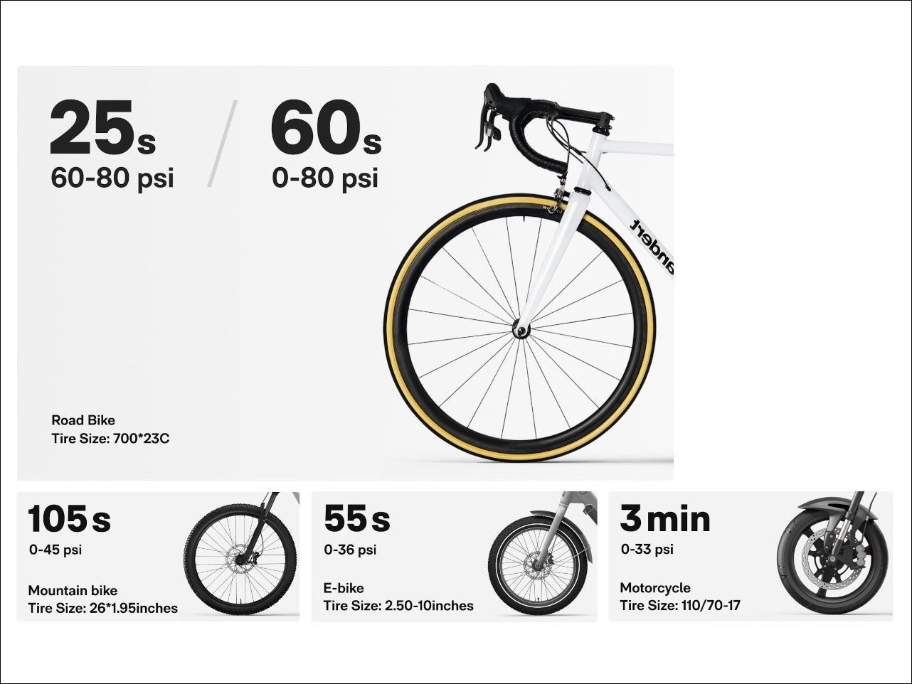 ・ロードバイク(約80psi):約60秒