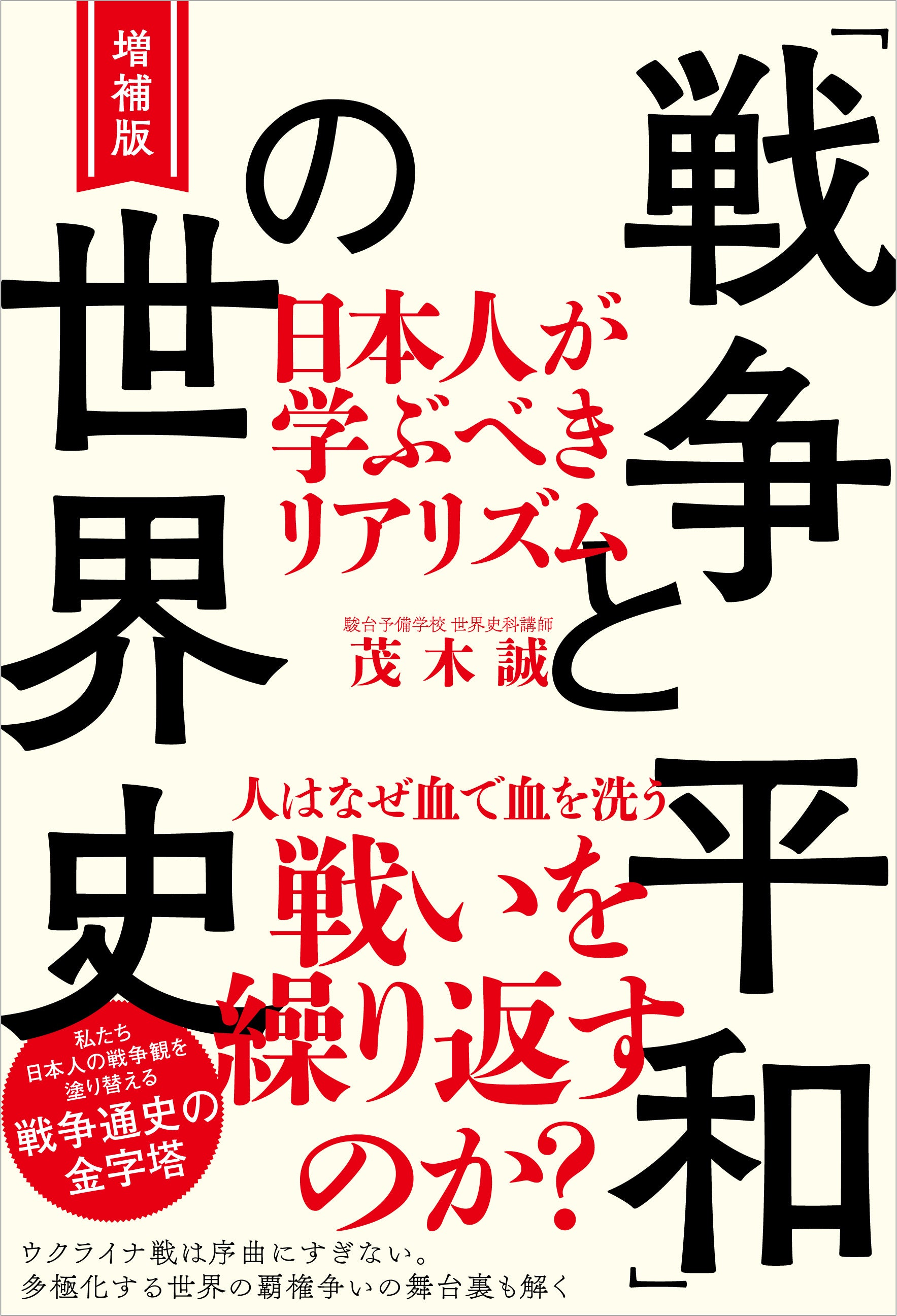 本書は、駿台予備学校やネット配信のN予備校で世界史講師を務め、現在では歴史系YouTuberとしても活躍する茂木誠氏による最新著書です。2019年7月刊行の『「戦争と平和」の世界史 日本人が学ぶべきリアリズム』に、今日のロシアによるウクライナ侵攻を踏まえ、加筆・アップデートいたしました。