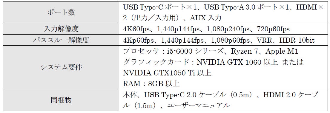 ・ゲームの映像を最大4K60fpsの超億画質で録画、配信できるキャプチャーデバイス
