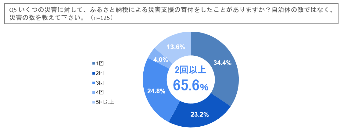 - 災害支援として複数回寄付した人は約7割、5件以上は13.6%