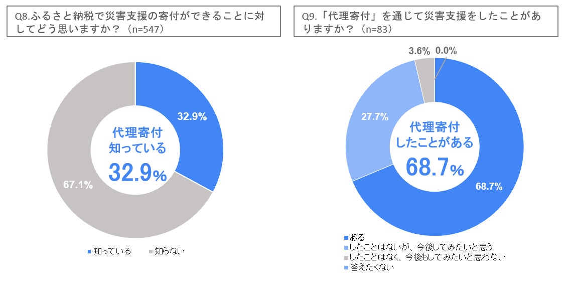 - 「代理寄付」を知っている人の約7割が「災害支援をした経験がある」