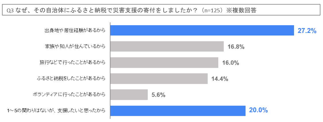 - 「出身地や居住経験がある」地域へ災害支援をしたと答えた人は約3割