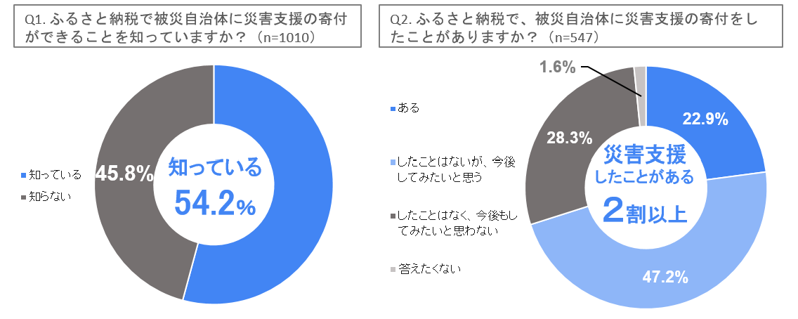 - ふるさと納税の災害支援を「知っている」と答えた人は54.2%、
