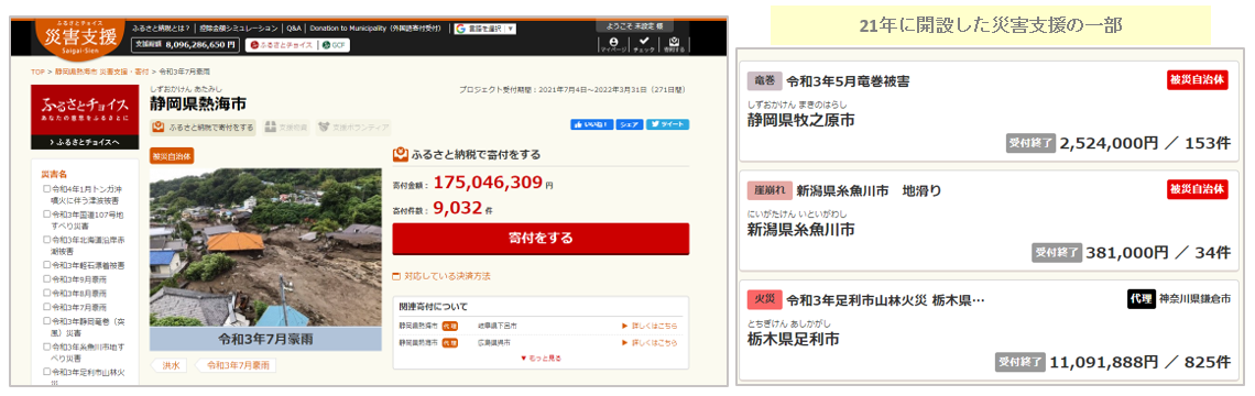 - 2021年7月の熱海市土石流災害では約2億の寄付金が集まる