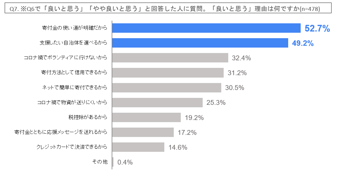 - 災害支援を良いと思う理由は「寄付金の使い道が明確だから」が最多