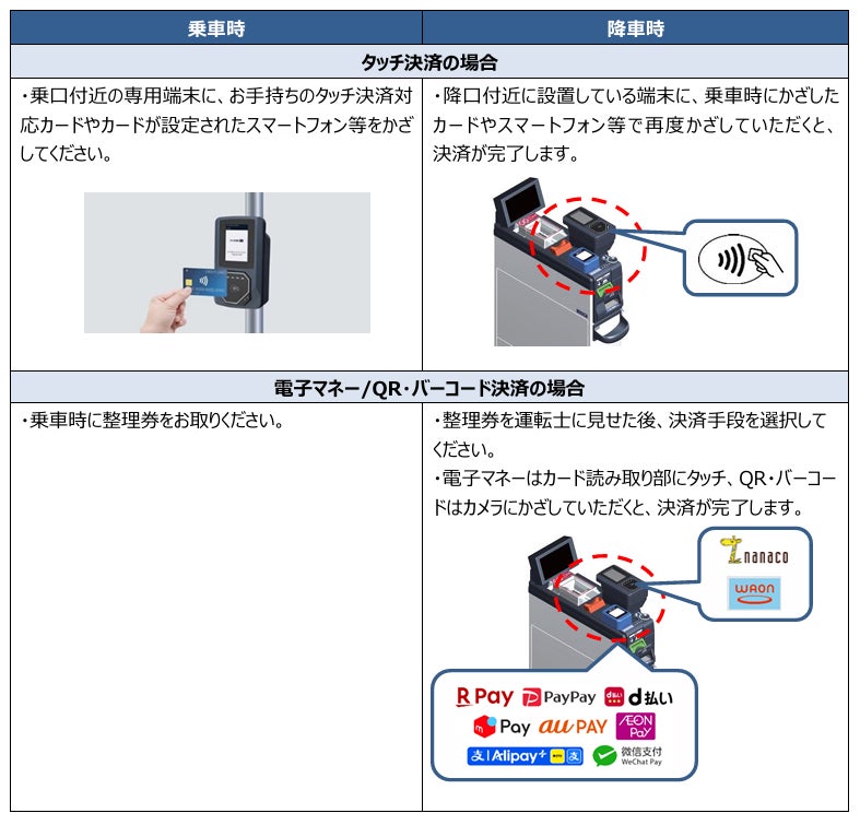 船木鉄道株式会社(本社:山口県宇部市、代表取締役社長:田中 敬一、以下:船鉄バス)、ブルーライン交通株式会社(本社:山口県下関市、代表取締役社長:伊藤 修、以下:ブルーライン交通)、三井住友カード株式会社(本社:東京都江東区、代表取締役 社長執行役員CEO:大西 幸彦、以下:三井住友カード)、株式会社ジェーシービー(本社:東京都港区、代表取締役会長兼執行役員社長:二重 孝好)、レシップ株式会社(本社:岐阜県本巣市、代表取締役社長:北野 元昭)、株式会社トランザクション・メディア・ネットワークス(本社:東京都中央区、代表取締役社長:大高 敦、以下TMN)、株式会社ニモカ(本社:福岡県福岡市、代表取締役社長:田端 敦)、QUADRAC株式会社(本社:東京都中央区、代表取締役社長:高田 昌幸、以下:QUADRAC)は、2026年2月2日(月)より、船鉄バスおよびブルーライン交通が運行する路線バスにおいて、三井住友カードの公共交通機関向けソリューション「stera transit」を活用したクレジットカード等(※)のタッチ決済による乗車サービスを開始します。あわせて、TMNの決済ゲートウェイサービスを活用し、電子マネーおよびQR・バーコード決済の対応を開始します。