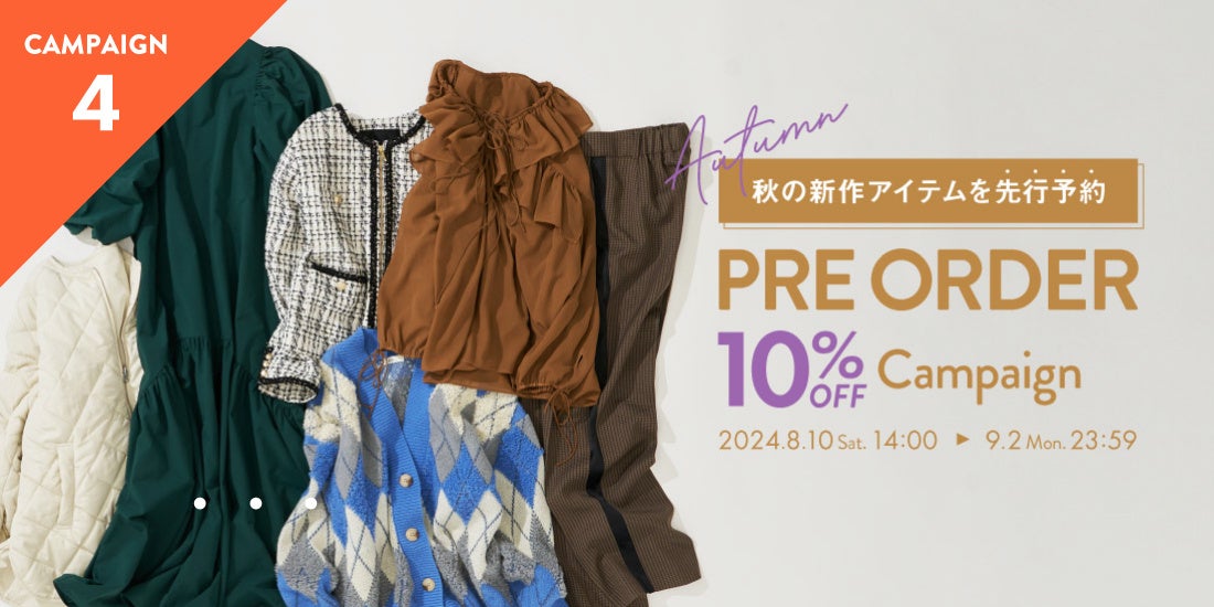 リニューアルを記念してお得なキャンペーンも開催。第1弾として初回ログインでもらえる500円オフクーポンや、秋の先行予約10%オフ、タイムセールなど盛りだくさんの内容をご用意しております。また、リニューアルキャンペーンは第2弾も予定しておりますので、こちらもご期待ください。