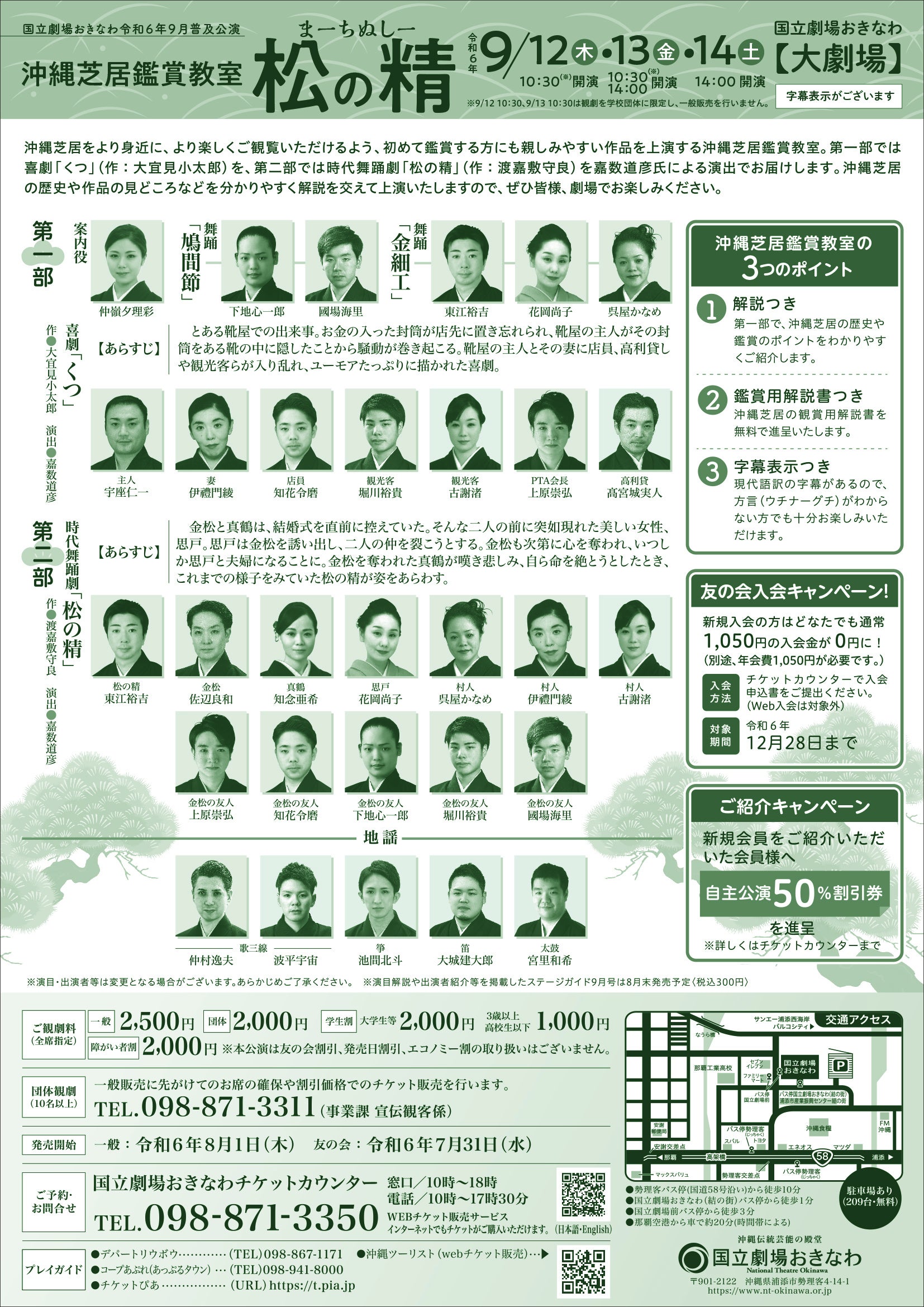 【国立劇場おきなわ】【大人気御礼!】沖縄芝居鑑賞教室「松の精」のご案内