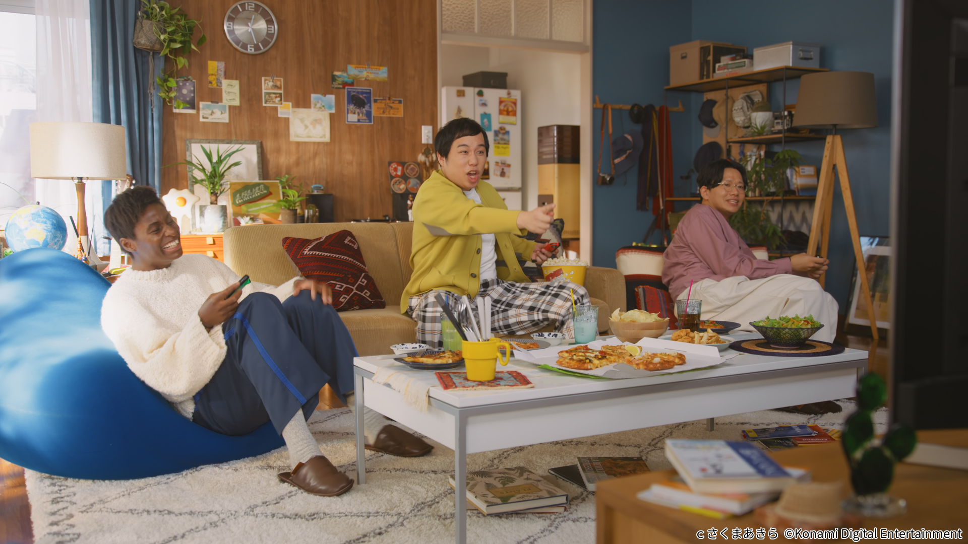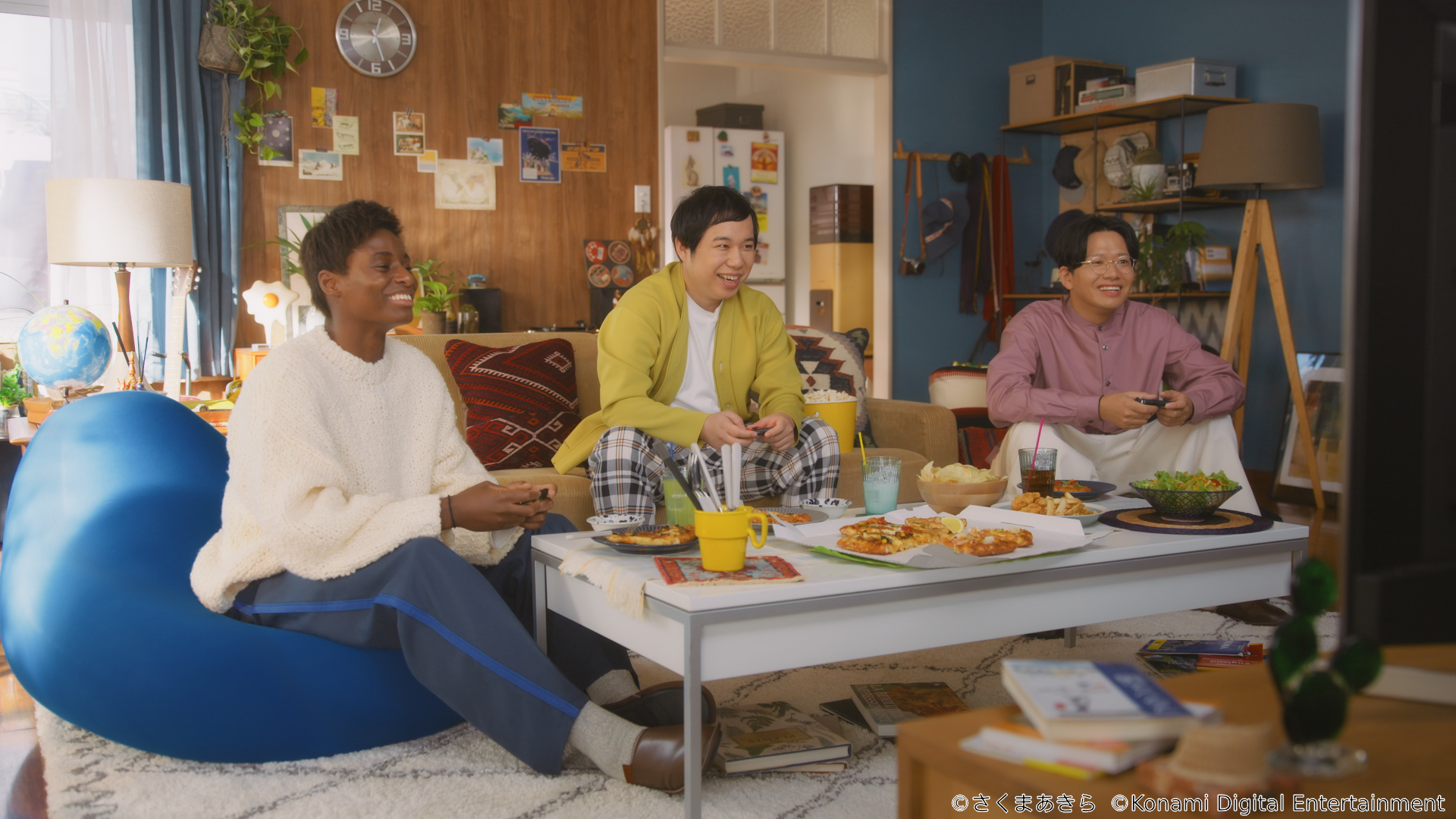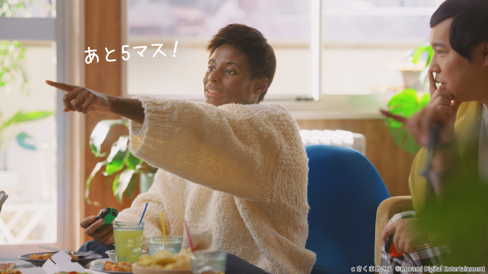 “僕の家で遊んでいる”という設定のCMなのですが、本当に仕事という感覚はなく、3人とも自然体で楽しめました。貧乏神もキングボンビーにされましたし、秘境にも飛ばされましたし、エブリンちゃんは本当に強かったです。遊びながら地理を覚えられるので、すごく良いゲームだなと思います。発売されたら、本当にこのメンバーで通信(対戦)してみたいです。