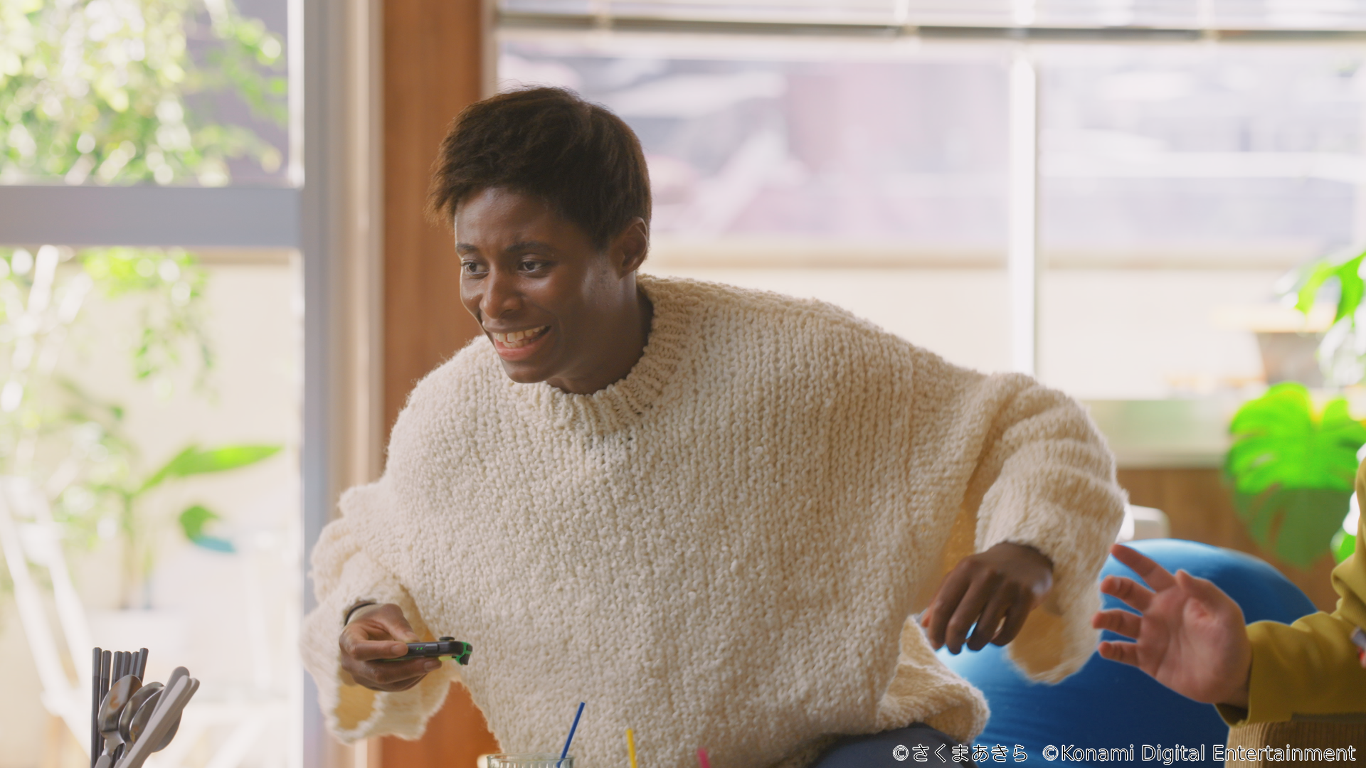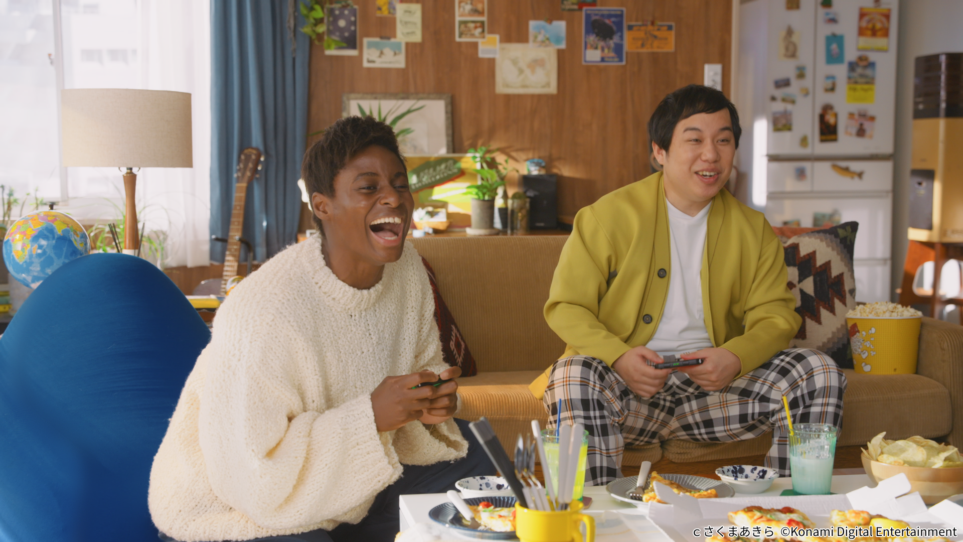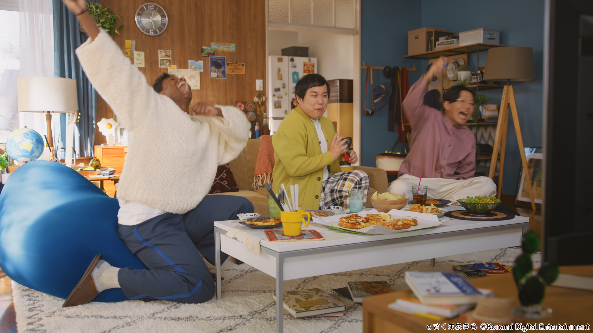 “僕の家で遊んでいる”という設定のCMなのですが、本当に仕事という感覚はなく、3人とも自然体で楽しめました。貧乏神もキングボンビーにされましたし、秘境にも飛ばされましたし、エブリンちゃんは本当に強かったです。遊びながら地理を覚えられるので、すごく良いゲームだなと思います。発売されたら、本当にこのメンバーで通信(対戦)してみたいです。